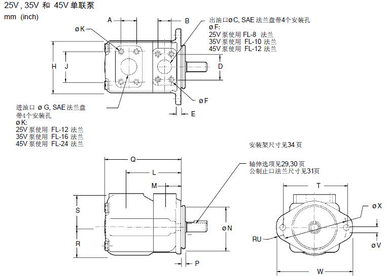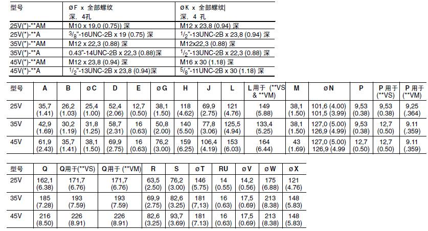 VICKERS威格士葉片泵25V、35V、45V的安裝尺寸詳解