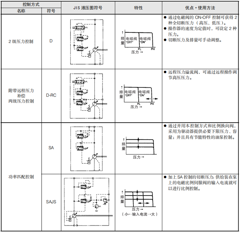 大金V系列變量型柱塞泵控制方式: