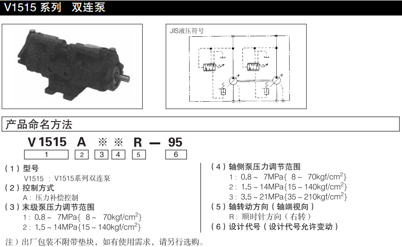 大金V1515系列雙連泵型號(hào)說明:
