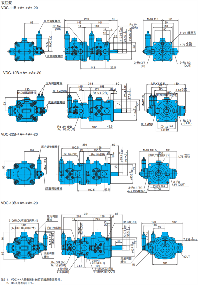 不二越VDC系列高壓變量葉片雙聯(lián)泵安裝尺寸圖: