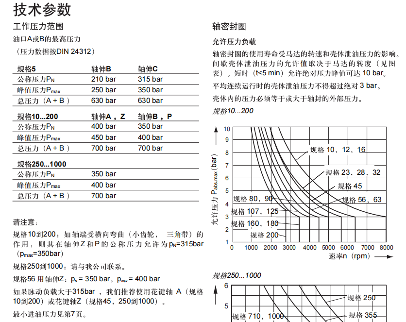 力士樂定量柱塞馬達A2FM性能參數(shù):