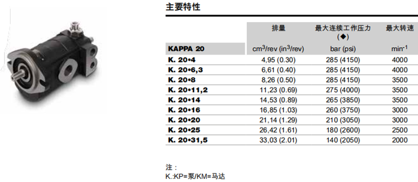 凱斯帕KP20系列鑄鐵齒輪泵及齒輪馬達(dá)參數(shù):