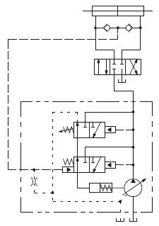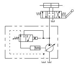 這種控制針對恒定的系統(tǒng)壓力,自動(dòng)地改變泵的排量,滿足系統(tǒng)的流量要求,在補(bǔ)償器設(shè)定的14bar(200psi) 壓力內(nèi),排量開始減小到零,功率損失減至最少,因此不需要用系統(tǒng)溢流閥。