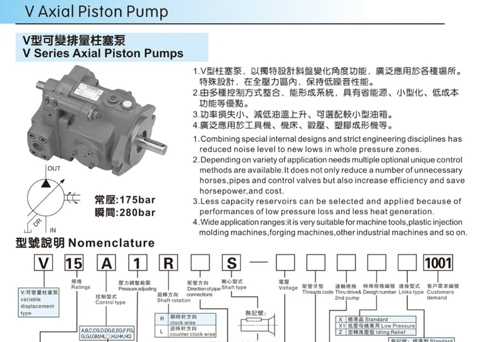 V型可變排量柱塞泵:
