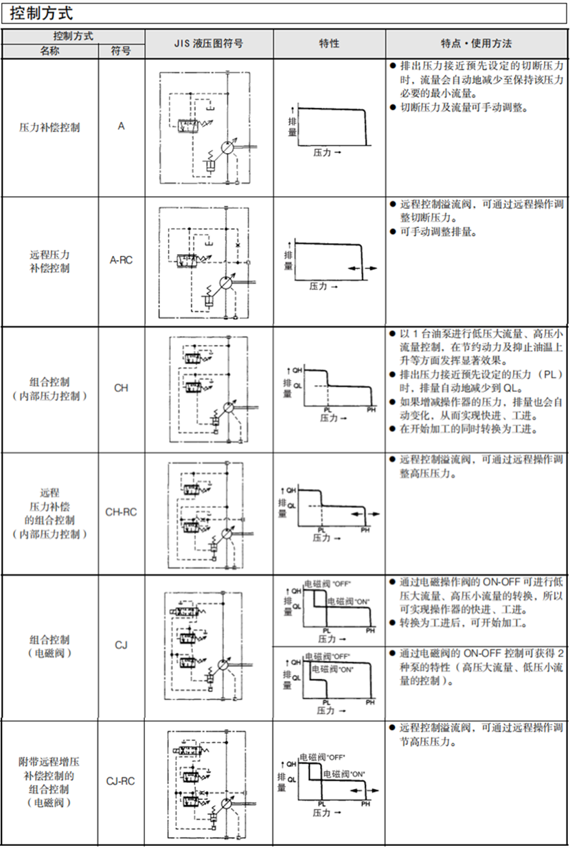 大金V系列變量型柱塞泵控制方式: