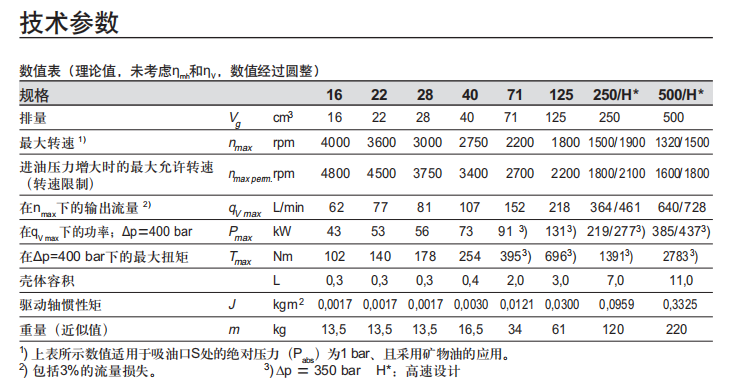 力士樂軸向柱塞固定泵 A4FO技術參數(shù):