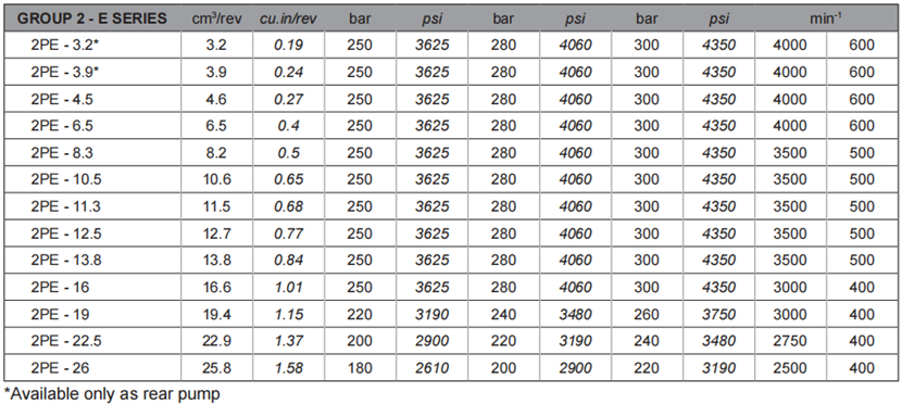 由于2PE系列薩拉米齒輪油泵包含多個(gè)型號和規(guī)格,以下提供部分型號的典型參數(shù)供參考: