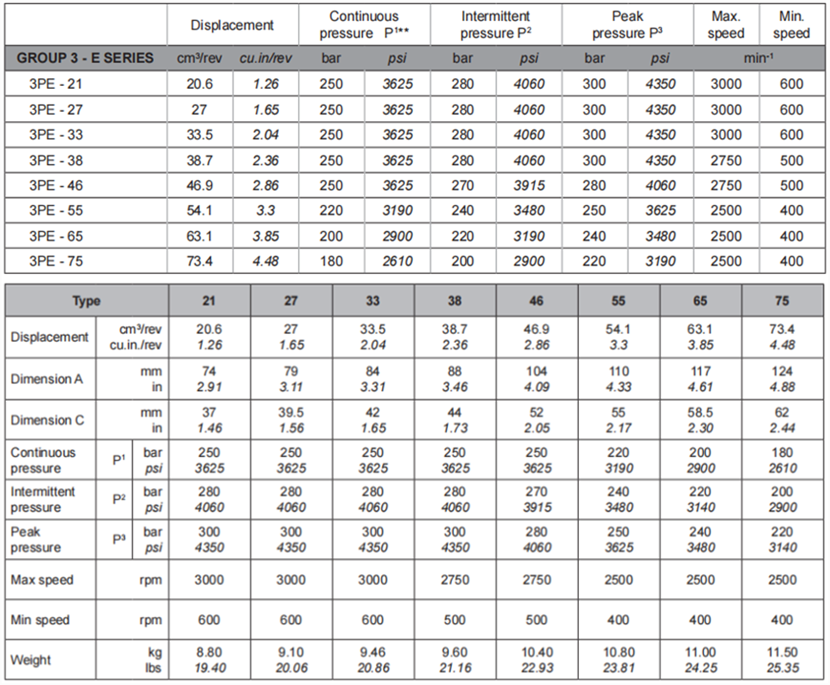SALAMI薩拉米齒3PE系列齒輪泵型號及規(guī)格參數(shù):