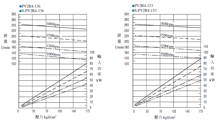 油研PV2R系列葉片泵的排量、壓力、輸入功率