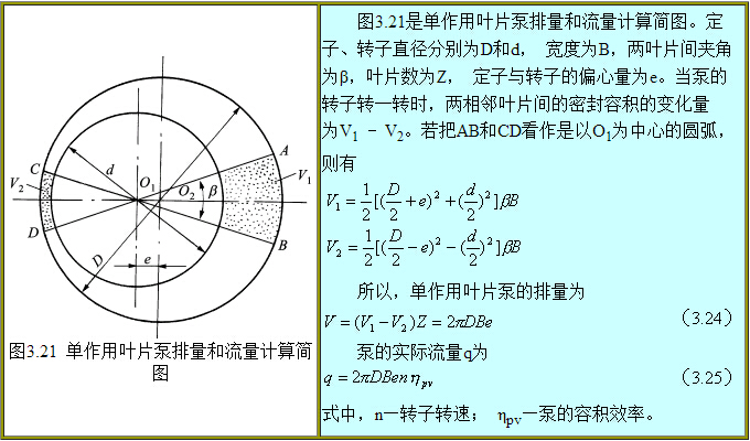 圖3.19為單作用葉片泵工作原理圖 圖3.20為單作用葉片泵的配油盤和轉(zhuǎn)子結(jié)構(gòu)簡圖